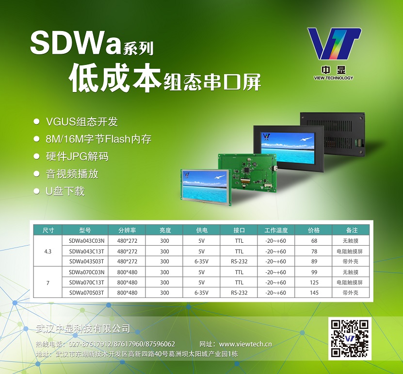 SDWa系列低成本VGUS組態串口屏 全面上市