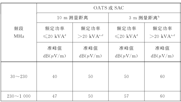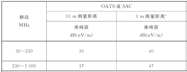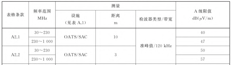 圖2 1組A類設備的電磁輻射騷擾限值要求