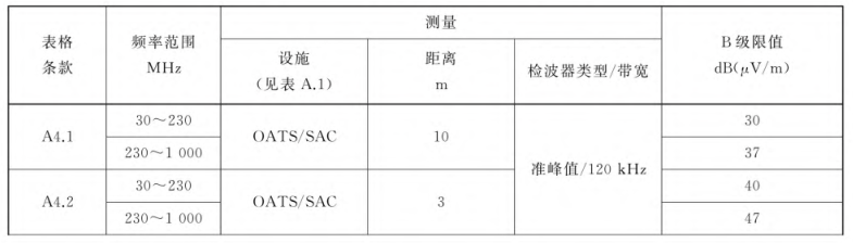 標準規定在居住環境中使用的設備應符合B級限值。所有其他設備應符合A級限值。對B級設備的要求是為了給居住環境內的廣播業務提供足夠的保護。(設備符合A級要求,可能無法為居住環境內的廣播業務提供足夠的保護。)
